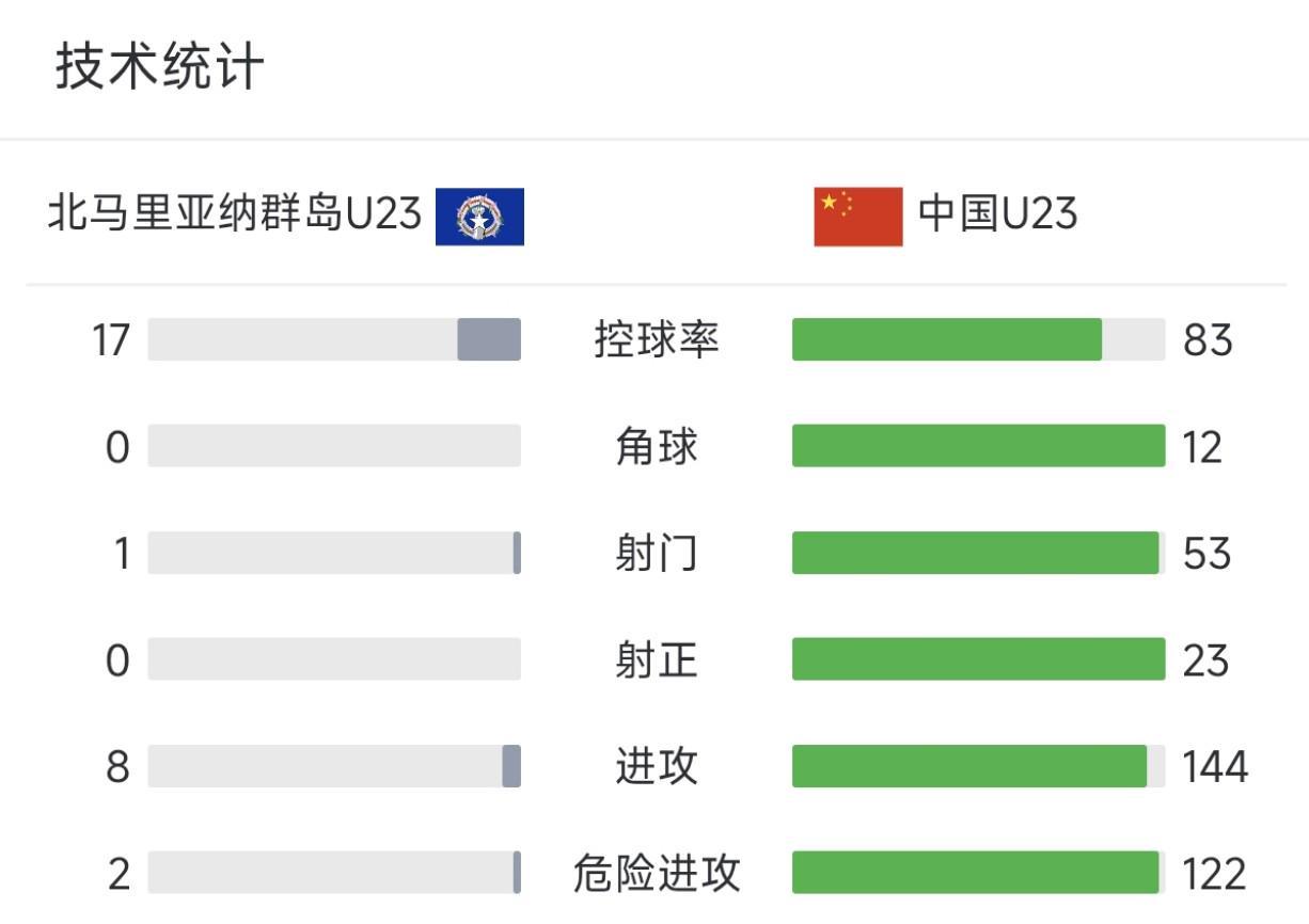 9月6日晚上,中国U22男足以10-0的比分击败了北马里亚纳群岛U22男足,全场比赛,中国队在数据上占据着绝对的优势。