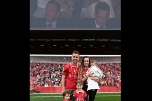 今年夏天因车祸去世的利物浦/葡萄牙队前锋若塔的妻子出席了这场比赛,赛前全场哀悼若塔。